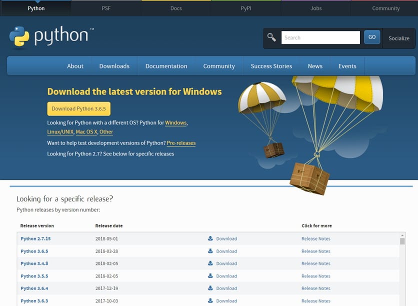 - 아래 링크를 클릭하여 Python 3.5 버전 적당한거 받아서 설치한다. (여기서는 D:\ML_Program\Python35 에 설치함)