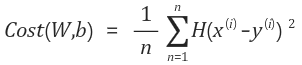 위에서 언급된 비용함수는 Cost(W,b) 로 표현되고, 수식은 아래와 같다.