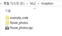 - 저자의 경우 D:\ML2\inception\ 하위경로에 압축을 풀기로 한다.