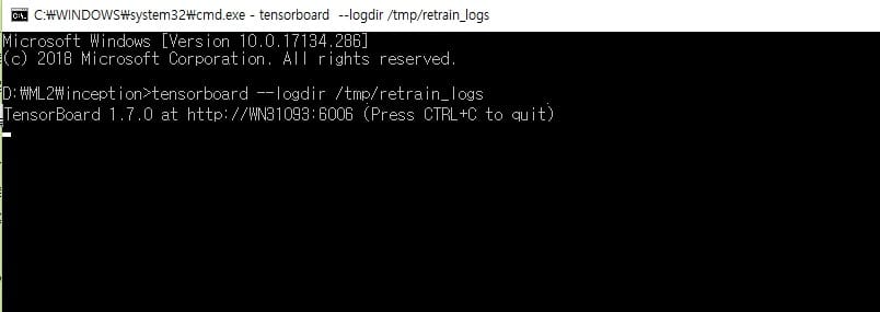- 위에 tensorboard 서버가 실행되면 그 아래에 http로 시작하는 주소가 나온다.