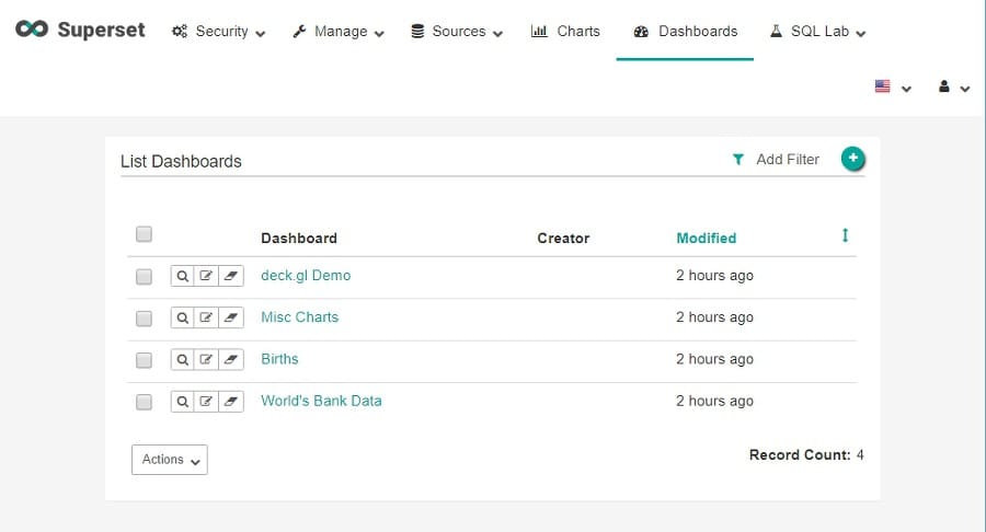 - URL : https://superset.incubator.apache.org/