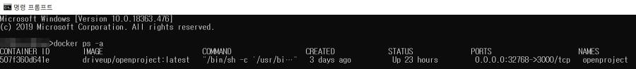 - driveup/openproject:latest : docker ps -a 명령어 치고 나오는 IMAGE명 (위 cmd창 참조)